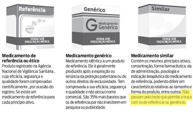 Os medicamentos genéricos podem substituir de referência prescritos pelo médico conforme a Anvisa. Eu, como médica, recomendo consultar o seu médico antes de aceitar qualquer troca no balcão da farmácia. Esses na embalagem têm uma tarja amarela com a letra G.